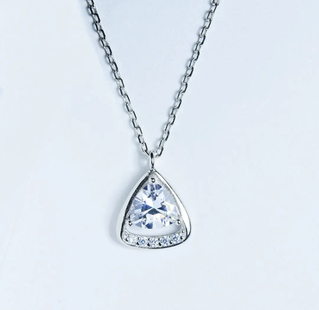 سلفر شكل مثلث مفرغ بداخله فص زيركون كبير اسفله صف من الفصوص الزيركون الصغيره