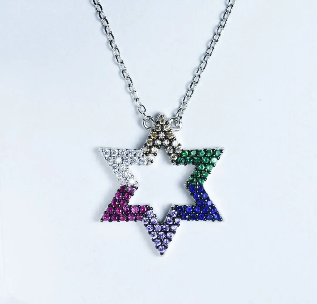 سلفر شكل نجمه مفرغه مزينه بفصوص زيركون صغيره ملونه طول 50 سم