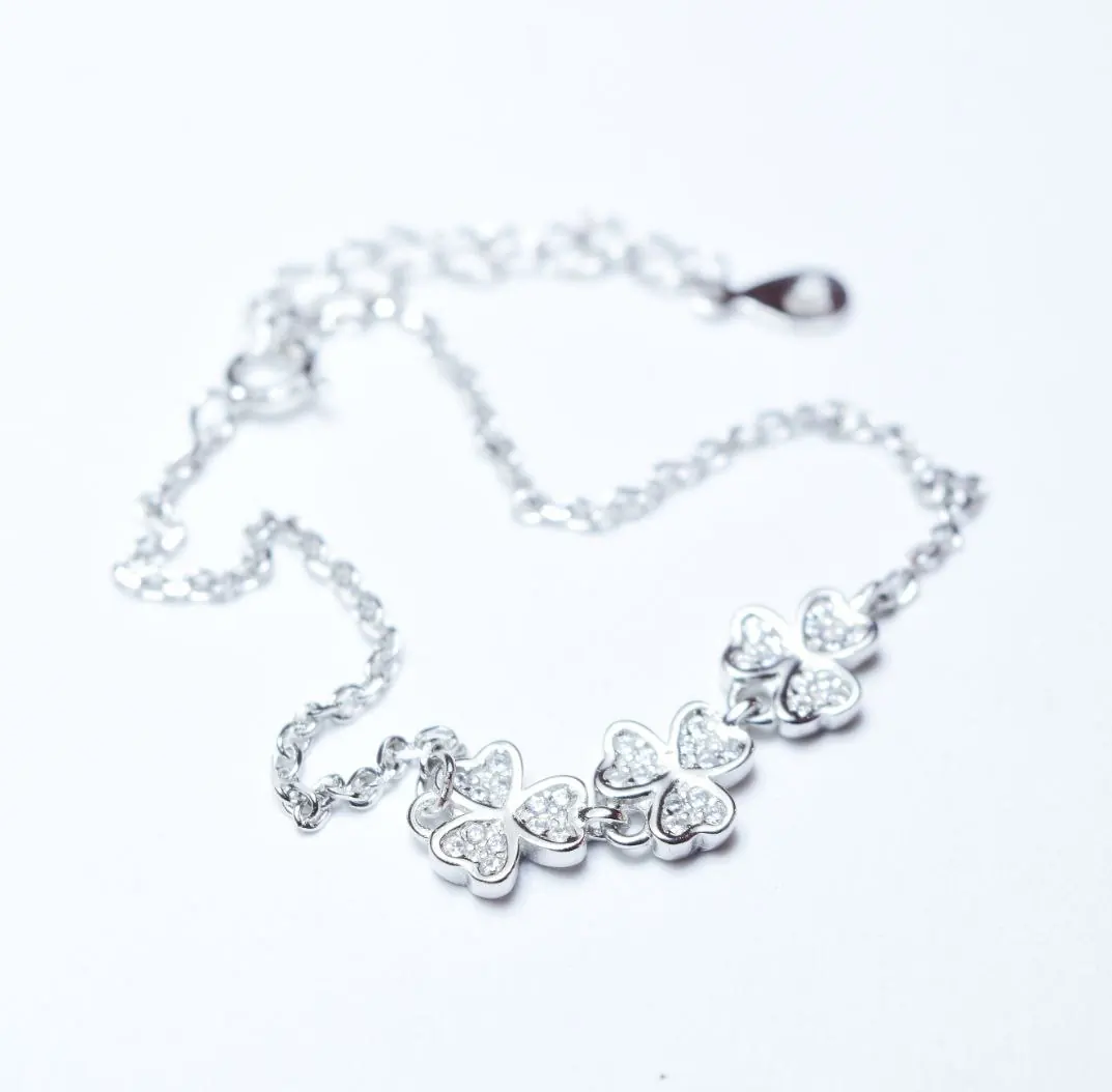 سلفر شكل 3 وردات اوراقهم شكل قلب بداخله فصوص زيركون صغيره طول 20 سم