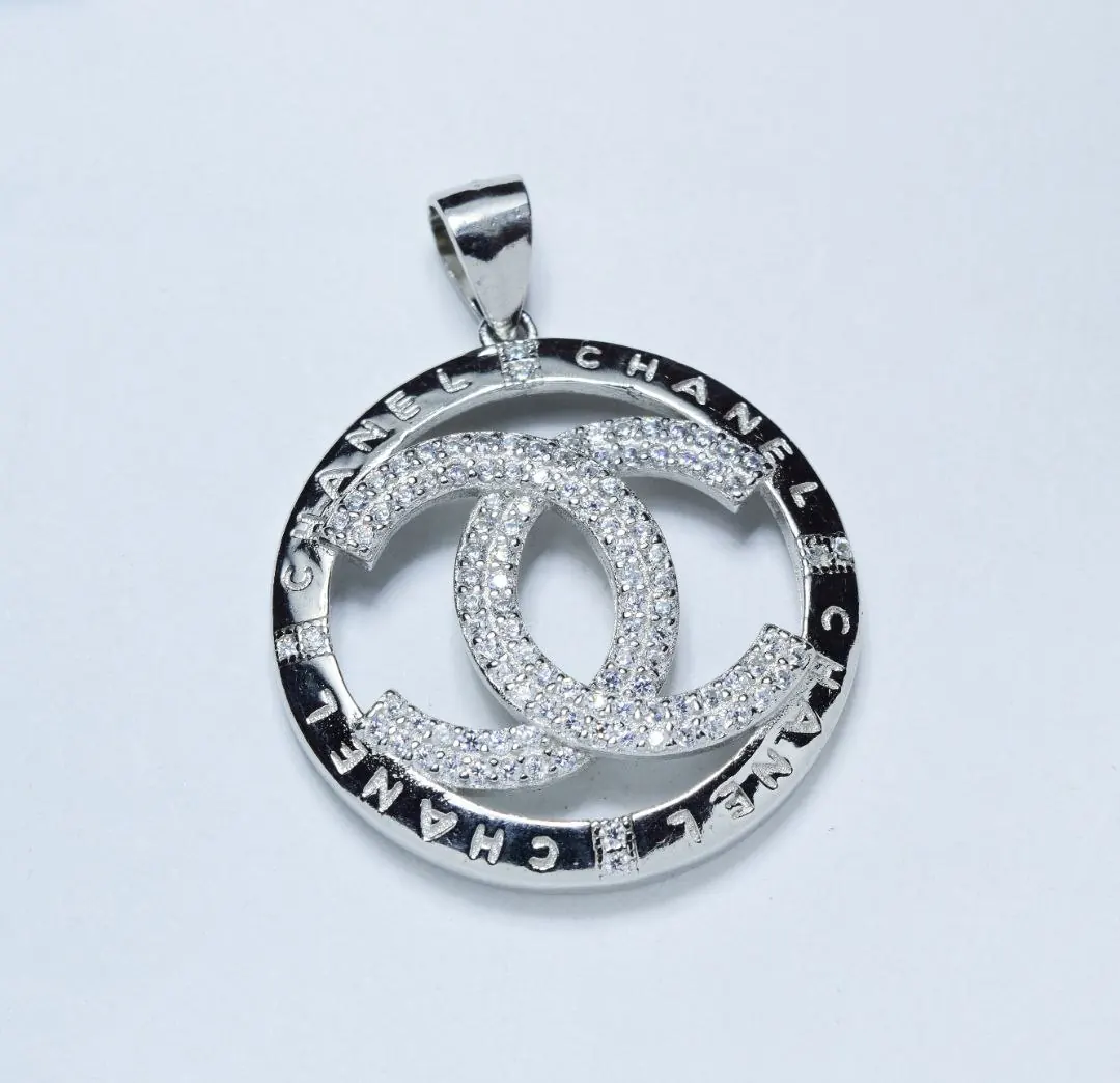 سلفر شكل دائرة بداخلها علامة شانيل مزينه بفصوص زيركون صغيرهسلفر شكل دائرة بداخلها علامة شانيل مزينه بفصوص زيركون صغيره