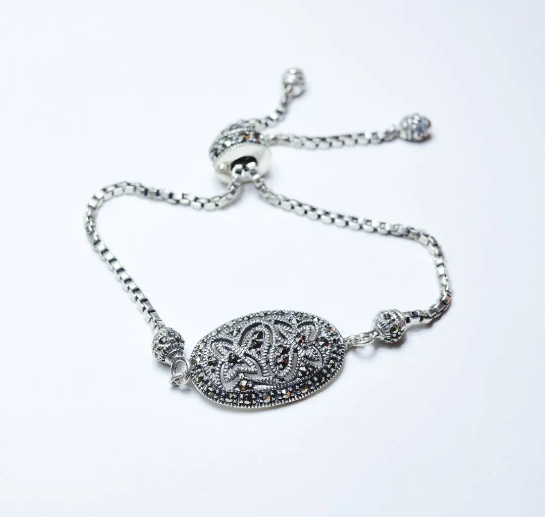 سلفر مأكسد شداد شكل بيضاوي مزين بفصوص ماركيز